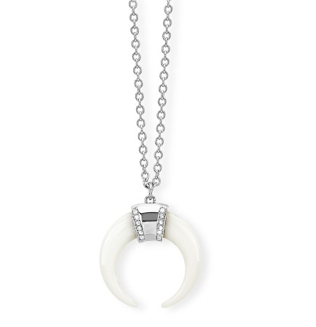 Collana donna in acciaio 316L , catena maglia rolò , lunghezza cm 85 , pendente cm 3,5 , cristalli bianchi e dettaglio in white-glass. Immagine indicativa , la confezione può variare in forma e colore.