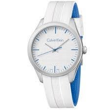 Cassa in alluminio, quadrante bianco, movimento al quarzo, cinturino in caucciù bianco e azzurro la parte interna. diam. 40 mm