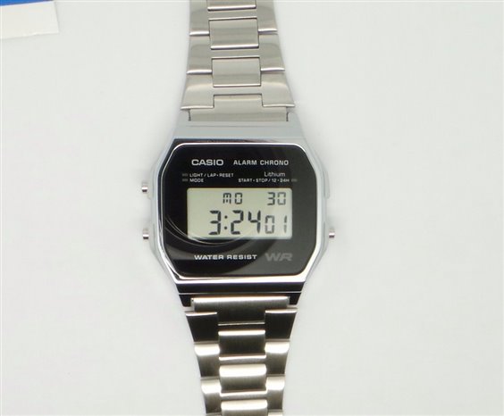 L'orologio da polso A158WA-1 color argento è dotato di lancette e indici con ampie aree fluorescenti per una facile leggibilità e di un'affidabile corona a vite. L'orologio digitale per uomo e donna ha anche una durata della batteria di 3 anni con CR2016. Grazie alla lunga durata della batteria e alle prestazioni affidabili, questo orologio da polso CASIO è perfetto per chi cerca un orologio elegante e multifunzionale. Funzioni: cronometro, promemoria sonoro, tempo e data, luce led verde