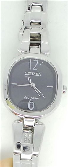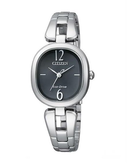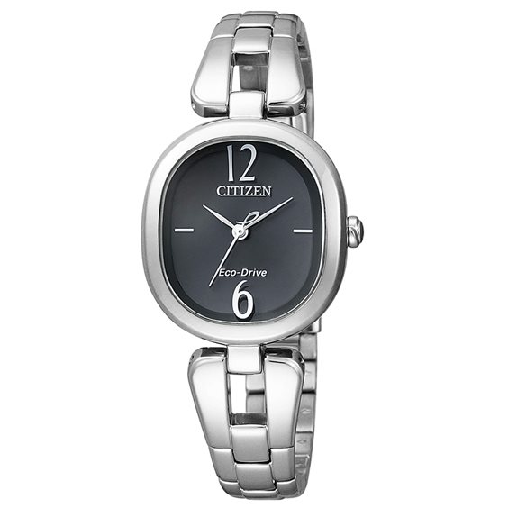 Orologio Citizen ref. EM0181-53E Collezione L. Cassa e bracciale in acciaio lucido. Quadrante nero con indici argentati al 3 e al 9, il 6 e il 12 in numeri arabi serigrafati sul vetro. Lancette argentate. Funzioni: ore - minuti e secondi al centro. Vetro zaffiro. Impermeabilità 5 bar. Movimento Eco-Drive (a carica luce infinita) con riserva di carica di 6 mesi.