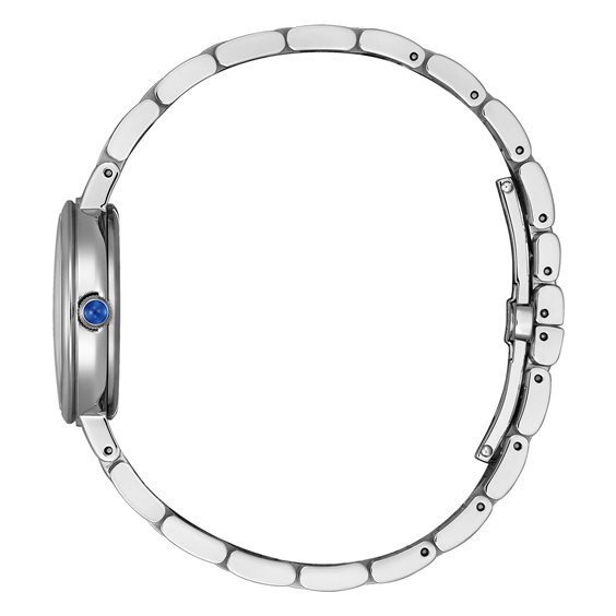Orologio Donna solo tempo collezione Citizen Lady. Cassa in acciaio lucido, corona con pietra cabochon blu. Movimento Eco-Drive a carica luce con riserva di carica 180 giorni. Vetro zaffiro leggermente bombato. Quadrante nero cifre arabe e lancette lucide. Bracciale regolabile in acciaio lucido chiusura a farfalla con pulsanti. Impermeabile 5 bar(5 atm). Scatola e Garanzia 5 anni Originali.