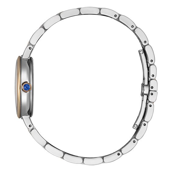 Orologio Donna solo tempo collezione Citizen Lady. Cassa bicolore in acciaio lucido, corona con pietra cabochon blu. Movimento Eco-Drive a carica luce con riserva di carica 180 giorni. Vetro zaffiro leggermente bombato. Quadrante rosa cifre arabe e lancette lucide oro rosa. Bracciale regolabile in acciaio bicolore lucido chiusura a farfalla con pulsanti. Impermeabile 5 bar(5 atm). Scatola e Garanzia 5 anni Originali.