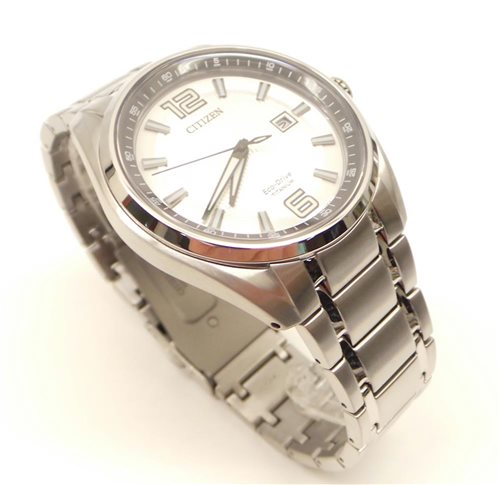 Orologio Solo Tempo. Cassa in Super Titanio Ti-IP spazzolato(5 volte + resistente del normale titanio 40%+leggero dell'acciaio) ,fondello a vite, lunetta e corona lucide, Ø 42mm. spessore 10,8mm. ansa(corpo bracciale) 23mm.Movimento Eco-Drive a carica luce infinita con riserva di carica di 8 mesi,funzioni ore minuti secondi data. Vetro zaffiro. Quadrante bianco, lancette ed index lucidi e luminor. Bracciale regolabile con chiusura deployante a due pulsanti in Super Titanio Ti-IP spazzolato e lucido. Impermeabile 10 Atm. Peso 97 grammi.