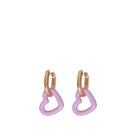 Orecchini a cerchio con pendente a forma di cuore con smalti color lilla