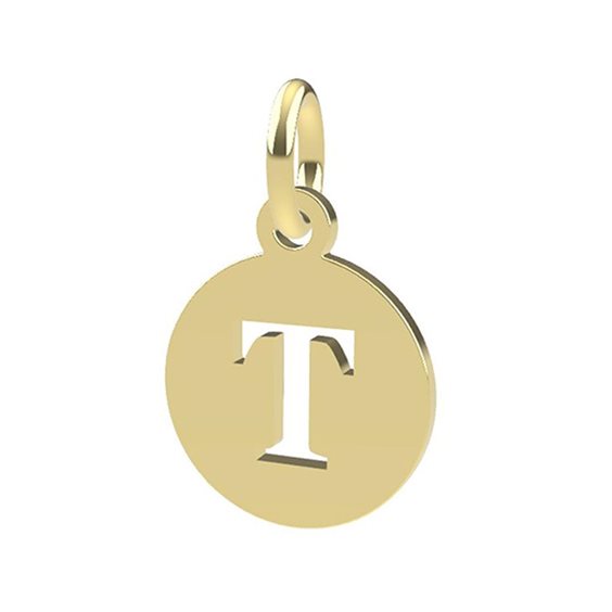 CIONDOLO DEDIE NUMERI E LETTERE TONDE / Lettera T ORO GIALLO