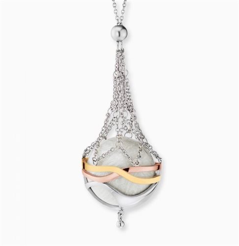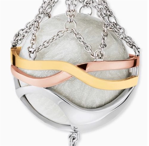 Collana Chiama Angeli con pendente in argento rodiato, dorato e rosè con sfera madreperlata che suona