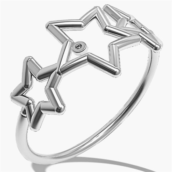 Anello Gemoro in oro bianco 18kt a forma di tre stelle con 1 diamante bianco di caratura 0,005 (colore G e purezza Si). La misura disponibile é 15.