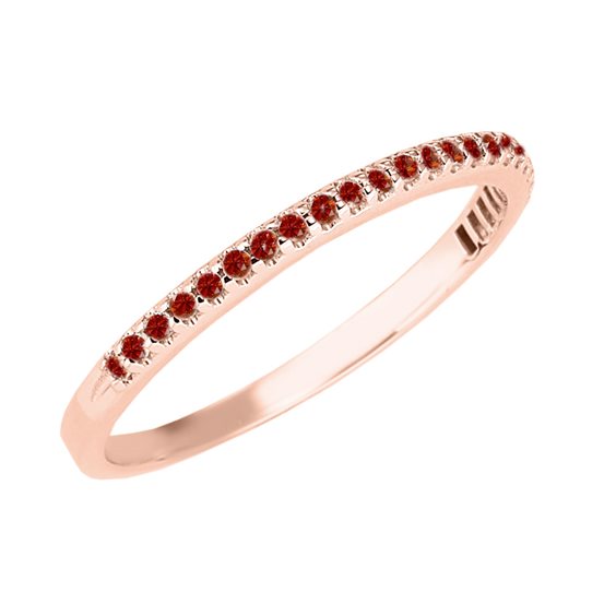 Anello mezzo girodito in oro rosa 18 KT con 23 rubini naturali a taglio rotondo di 0.01 ct per una caratura totale di 0.26 ct