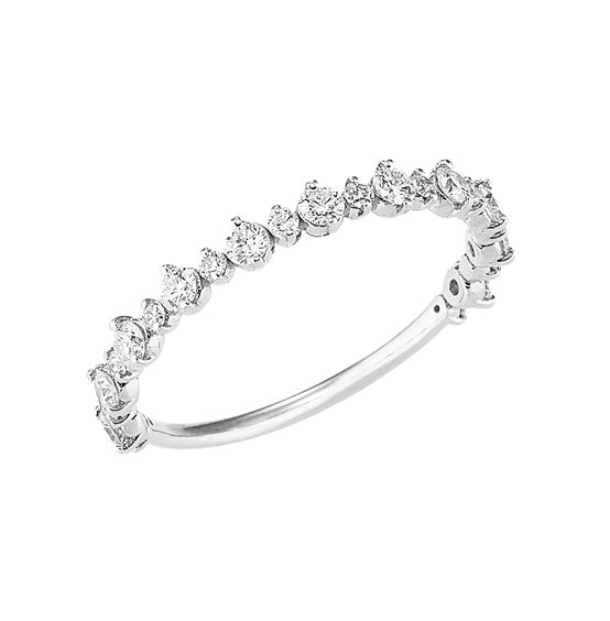Anello in oro bianco 18 KT con 11 diamanti bianchi qualità G-Si da 0.03 ct e 12 diamanti bianchi qualità G-Si da 0.01 ct per una caratura totale di 0.45 ct