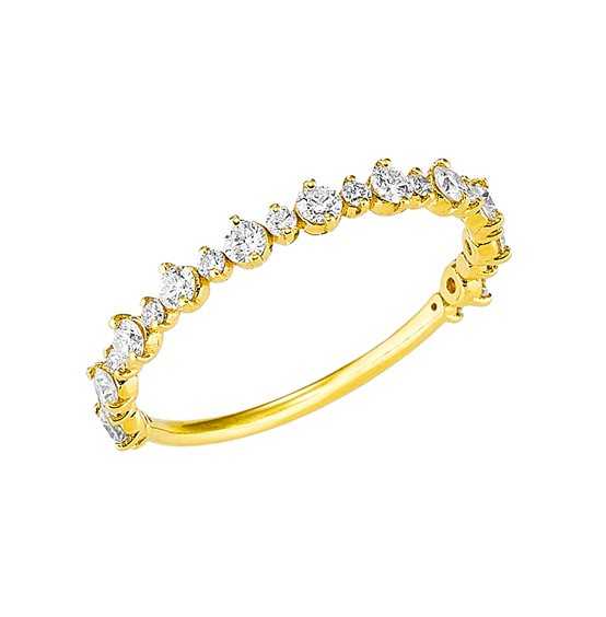 Anello in oro giallo 18 KT con 11 diamanti bianchi qualità G-Si da 0.03 ct e 12 diamanti bianchi qualità G-Si da 0.01 ct per una caratura totale di 0.45 ct