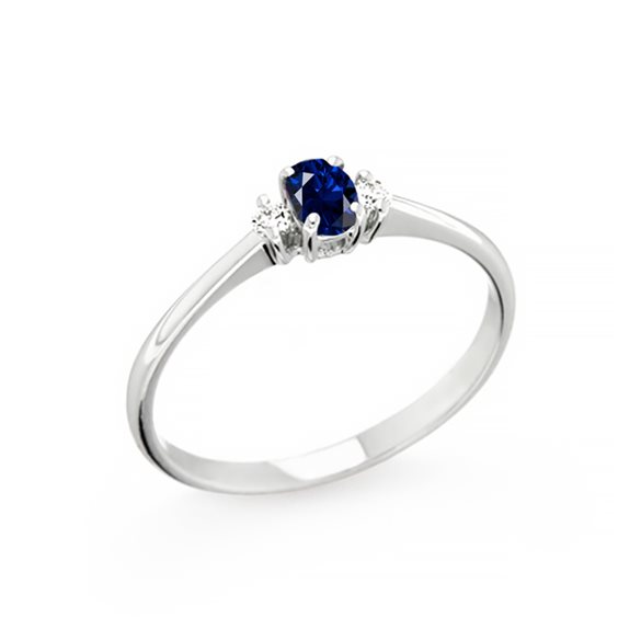 Anello in oro bianco 18 KT con zaffiro di taglio ovale ct. 0,21 e 2 diamanti bianchi qualità G-Si da 0.03 ct per una caratura totale di 0.06 ct