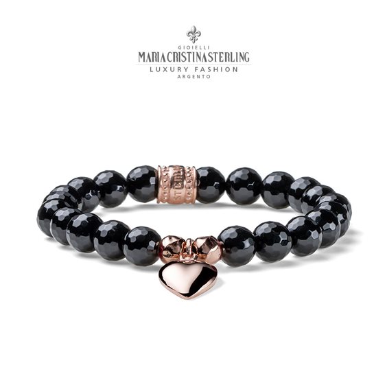 Art. G1890R • Bracciale elastico cm.18 in Argento 925 ‰ • Agata nera ø 8 • Interamente realizzato a mano • Made in Italy • Disegnato per Maria cristina sterling da Alessandro Magrino