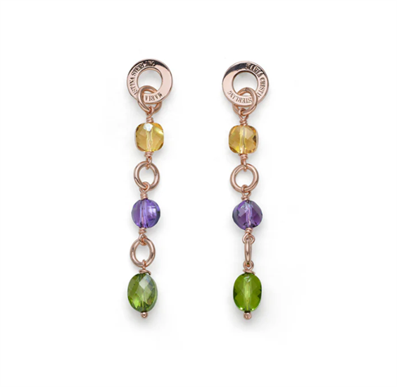 • Orecchini pendenti Claudine in Argento 925‰ oro rosa • Quarzi multicolor • Chiusura a farfalla • Interamente realizzato a mano • Made in Italy • Disegnato da Alessandro Magrino