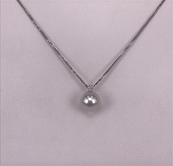 Collana Mikiko in oro bianco 750/000 con perla bianca coltivata South Sea mm. 10/11 e diamanti taglio brillante ct. 0,0442