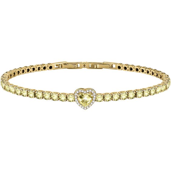 Bracciale Tennis Donna Morellato Della Collezione Tesori con cristalli gialli in Argento 925‰ placcato oro giallo con cristallo centrale forma cuore. Chiusura a scattino. Misura 19 cm. accorciabile a 18. Certificato di autenticità. Confezione Originale Morellato.