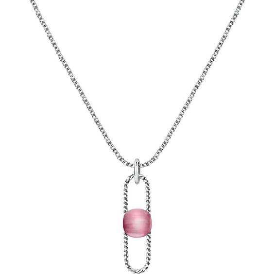 Collana Da Donna Di Morellato Della Collezione 1930. Gioiello Realizzato In Acciaio Con Occhio Di Tigre rosa Della Misura Di 40+5 Cm