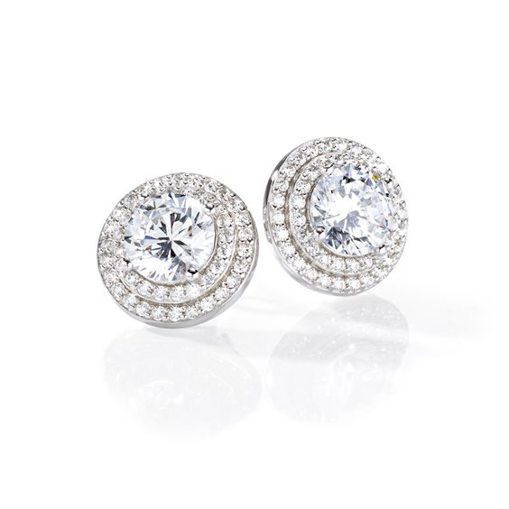 ORECCHINI DI PREGIO DONNA COLLEZIONE TESORI IN ARGENTO 925% TONDI CON ZIRCONI bianchi , diametro cm 1. CHIUSURA CON PERNO E FARFALLINA Immagine indicativa , la confezione può variare di forma e colore.