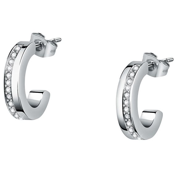 ORECCHINI MORELLATO IN ACCIAIO CERCHIO PICCOLO APERTO CON ZIRCONI BIANCHI.