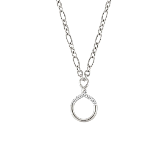Collana in Argento 925 con Cerchio con rivestimento superficiale in rodio bianco e Cubic Zirconia Bianchi. Chiusura con Cubic Zirconia Bianco. Lunghezza: 44,5 cm. Misura pendente: 1,8 x 3 cm.