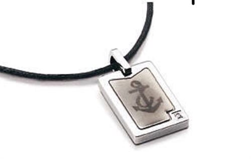 PENDENTE MARINA IN ACCIAIO CON SIMBOLO ANCORA, DIAMANTE E LACCIO COTONE