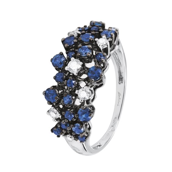 Anello Salvini della Collezione Sparkling Chic in oro bianco 750/000 con zaffiri di varie sfumature ct. 1,00 e diamanti taglio brillante ct.0,21 colore G