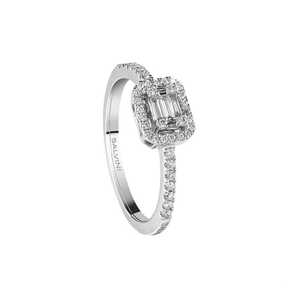 Collezione: Magia s Materiale: Oro bianco 18kt Tipo Pietra: Diamante Taglio pietra: Rotondo/baguette Caratura: 0.23 ct Colore Diamante: GH