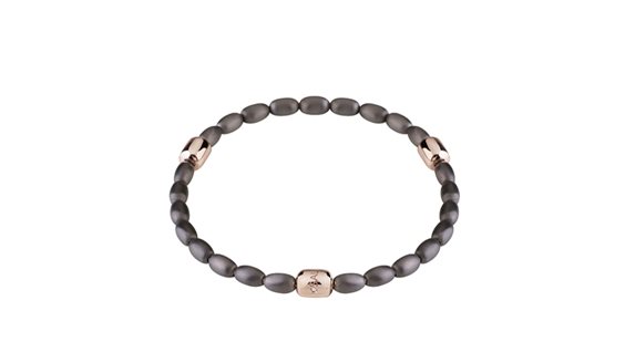 Bracciale da uomo in argento brunito nero e oro rosa 9kt con diamante (0.01ct colore GH).