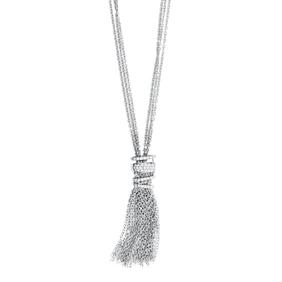 Curve sinuose regalano luce magica alla collezione di gioielli Euforia.Tre catene in oro bianco si incontrano in un elemento in diamanti taglio brillante di ct 0,20