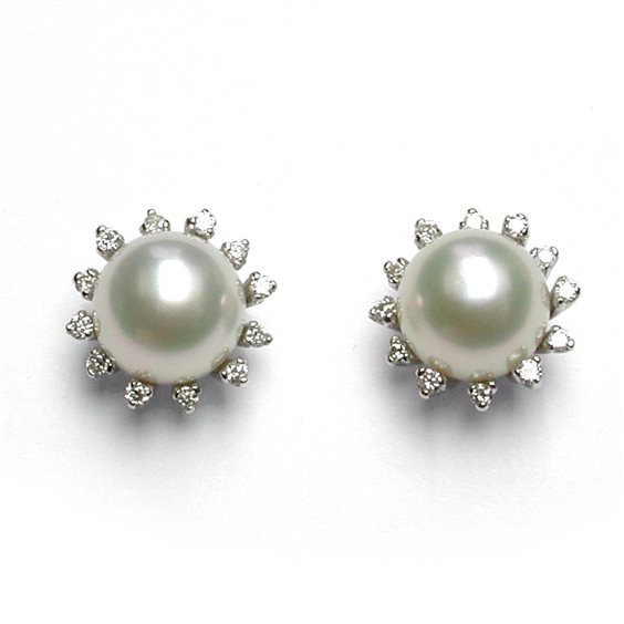 Orecchini Salvini della Collezione Giunone in oro bianco 750/000 con perla coltivata Akoya mm. 8 e diamanti taglio brillante ct. 0,20