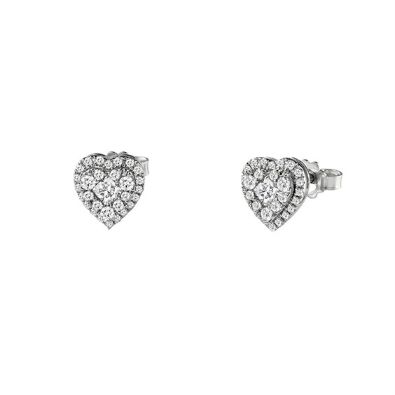 Orecchini in oro bianco motivo a cuore con diamanti 0,50 ct. Attacco a farfallina