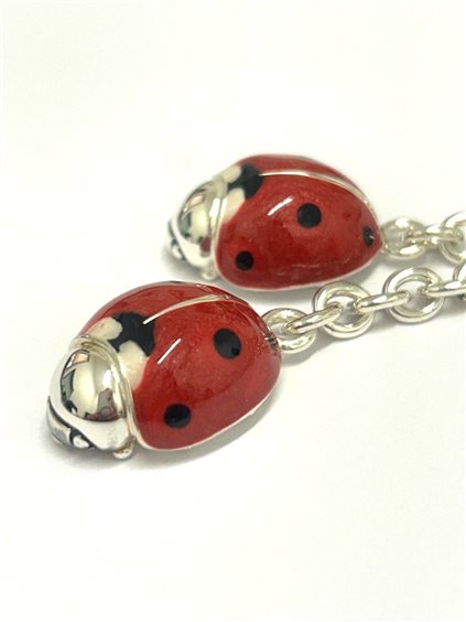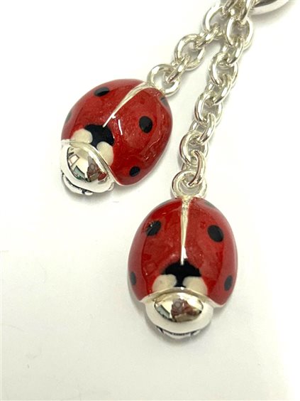 Portachiavi coccinella in argento 925 e smalti. La creazione è smaltata a mano con smalti colorati e interamente Made in Italy.