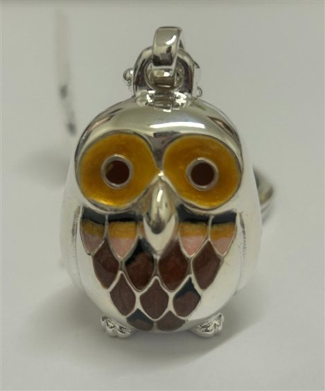 Portachiavi con gufo in argento 925 e smalti. La creazione è smaltata a mano con smalti colorati e interamente Made in Italy.