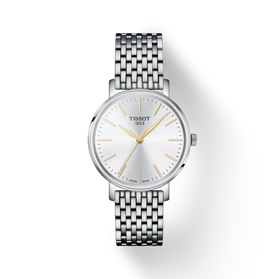 L'accessorio ideale per ogni momento, il Tissot Everytime è meravigliosamente all'altezza del suo nome. Il suo quadrante dal design classico e senza tempo, elegante e raffinato, lo rende un orologio estremamente moderno. Il suo presunto minimalismo ti permette di dare libero sfogo alla tua immaginazione nella scelta del bracciale che lo accompagna.