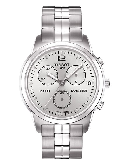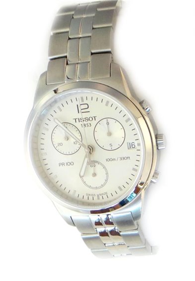 Orologio cronografo con data, cassa e cinturino in acciaio con chiusura a pulsanti, quadrante silver, movimento svizzero al quarzo, vetro zaffiro, impermeabile 10ATM, diametro 40mm. Completamente Swiss Made