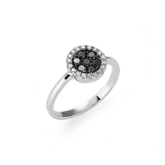 Anello in oro bianco 18 KT con 18 diamanti bianchi qualità G-Si da 0,18 ct e 7 diamanti neri da 0,32 ct