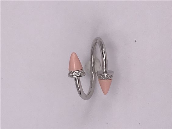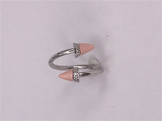 Anello in argento 925/000 di misura regolabile con pasta di corallo rosa e pietre bianche