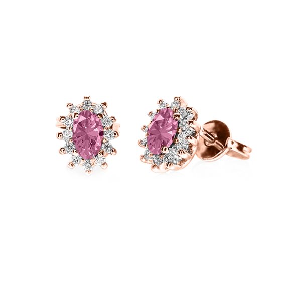 Paio di orecchini in oro rosa 18 KT con 2 zaffiri rosa naturali a taglio ovale ct. 0,56 e 24 diamanti bianchi qualità G-Si da 0.007 ct per una caratura totale di 0.17 ct