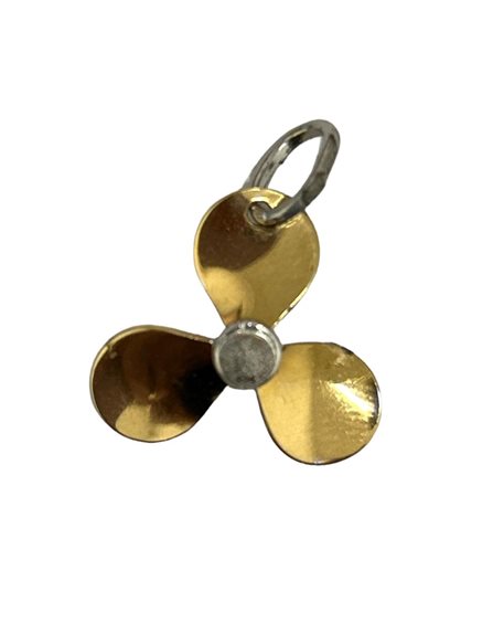 Pendente in oro giallo a forma di elica. Questo ciondolo rappresenta l'elica a 3 pale utilizzata per la propulsione di barche e yacht, simboleggiando evoluzione, crescita e resilienza. La sua forma particolare riflette la continua ispirazione che traiamo dal mare.