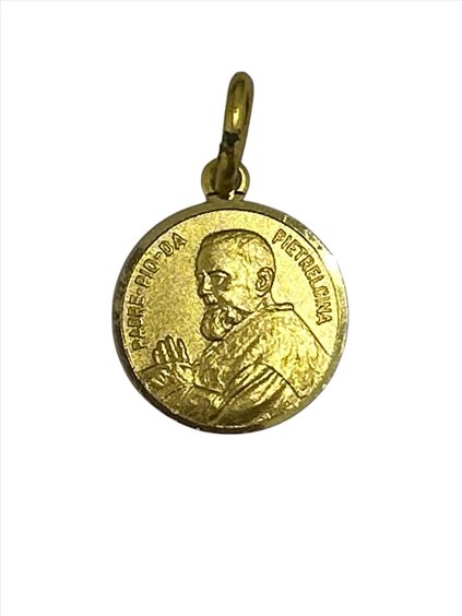 Medaglia in oro giallo raffigurante Padre Pio DIMENSIONI cm 1,5 X 1,5